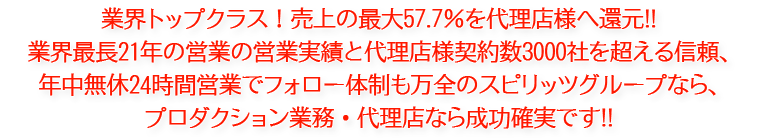 業界最大手のスピリッツだからこそできる安心の代理店制度参入のご提案